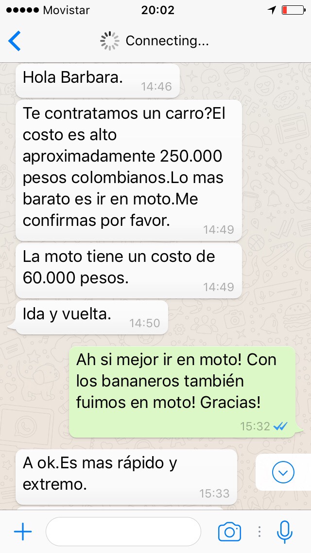 The warning signs were all there. I was WhatsApping with José Diaz of Fairtrade coffee cooperative Cooagronevada about visiting some of their members in Colombia’s Sierra Nevada, when he asked me if I’d prefer to go by car or motorbike. Having trundled around the banana farms on the back of Foncho’s motorbike for the previous few days, I was feeling cocky. And noting the large price difference, I didn’t hesitate. “Better to go by bike,” I replied. “Ah yes,” responded José, “it’s faster and more extreme.”