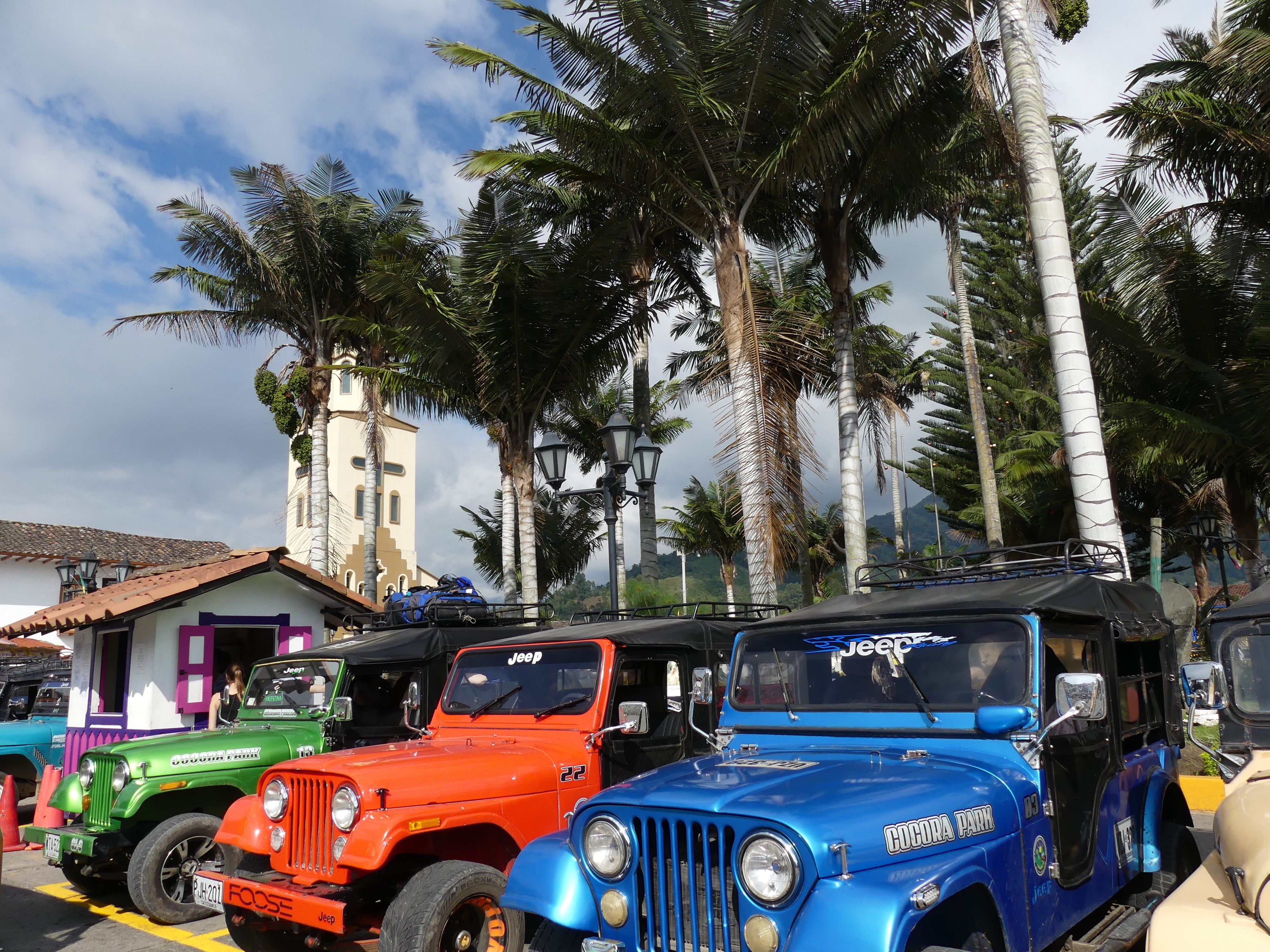 Arriving in Salento, which sits in the heart of Colombia’s ‘eje cafetero’ (or coffeelands) in the late afternoon sunshine is a truly colourful joy. The hotels, cafes and bars surrounding the town’s main square are painted bright and happy shades of red, yellow, blue and green. Instead of the yellow city taxis, a line of Jeeps and Willys are ready to ferry us up the hill to La Serrana, a dairy farm and hostel with wonderful views of the green, coffee tree laden hills all around.