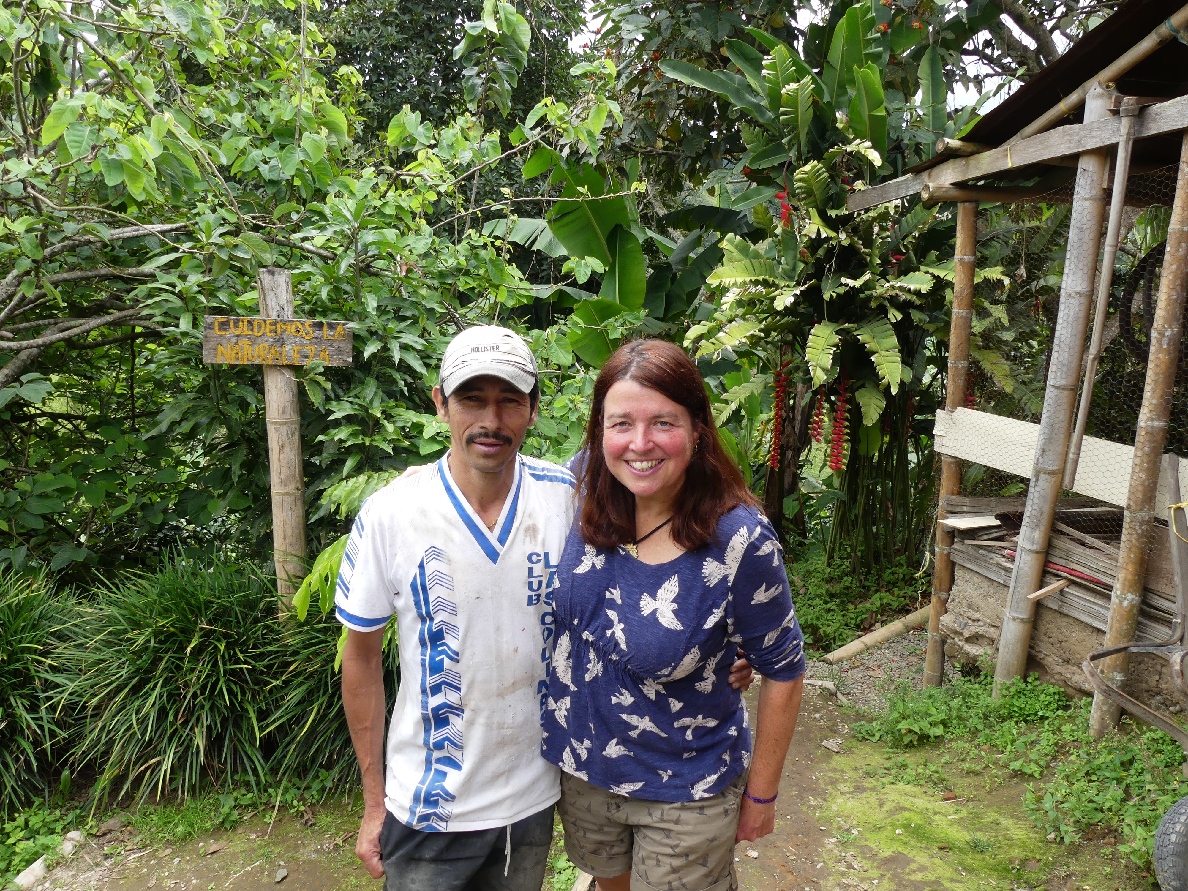 As Salento is in the heart of the coffee region, there are plenty of farms you can visit. As there weren’t any Fairtrade groups nearby, I eschewed the offer of a visit to El Ocaso, a large and very professional looking coffee plantation with multiple other certifications and tours from guides in neat branded red tour guide jackets, and instead headed to Don Elías’ small organic family farm down the road, where his son Jonh (no, that’s not a spelling mistake!) took us round in his farm clothes and mud spattered boots. Here the several varieties of coffee are interspersed with banana and plantain palms, avocado trees, pineapples, guava, yucca, naranjilla, and lots of flowers, all contributing to the organic and diverse farming methods they practise here. Taking us around his 4 hectare farm, Jonh told that in a good year they can produce up to 8 or 9 tonnes of coffee beans, but last year only yielded between 4 and 5. The family only has two routes to market: direct sales to visitors to the farm and the “Comite de los cafecultores” or farmers’ association where the prices for their parchment coffee (fermented, dried beans before the papery outer shell is removed) have recently been falling. It was a reminder of how valuable the role of a decent, democratic farmer cooperative can be, and access to a fair market with transparent pricing. Back at the house, we grind some recently roasted beans and Don Elias’ wife, Jonh’s mother brews up the strongest, best espresso I’ve had in Colombia. I don’t hesitate to purchase a bag of their delicious beans, now nestling along with the Ecuadorean chocolate in my increasingly straining-at-the-seams backpack.