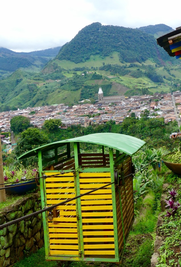 I’ve been travelling from Popayan to Cali and Salento with Ben and Olivia from Washington DC, who have also quit their jobs working for a US Senator and as ICU nurse respectively to travel (check out their fab slackerbackpackers Instagram feed here). Now the three of us embark together on the road from Salento to Jardín, involving first a local bus along beautiful valleys to Pereira, then a big bus heading for Medellín which sets us down at the town of La Pintada. Here, we are informed that there are no more buses today going where we want and we need to take a ‘colectivo’ or shared taxi – in this case a mototaxi! After a bit of haggling, we squash all our big rucksacks in, and squeeze the three of us in on top, and set off along shady green roads for the hour’s ride to the town of Bolombolo – with this motorised tricycle all piled up with luggage and Ben in his Panama hat we feel like a proper world traveller cliché as we roar along with the wind whipping in our faces. At Bolombolo, we tumble out of the mototaxi to sit under a shelter and a large tree at a crossroads, waiting for our final bus to pass for another hour. Just as the sun is going down and the mosquitoes are starting to bite, one finally comes and we grab the last three seats. All in all, the journey takes us 9 hours!