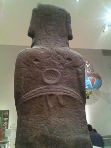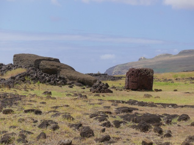 Anyway, back to the HMS Topaze. The moai they took was found half buried in one of the houses at Orongo, it is the moai from their most important ceremonial village, taken onboard as a trophy to be given to Queen Victoria. On its back there are carvings of birdmen and fertility symbols. It’s known colloquially as the “stolen friend” although its name, Hoa Hakananai’a actually means “wave-breaker”. As I walked past the crumbled platform on which this moai possibly once proudly stood, I couldn’t help but think the statue ought to be restored majestically to its rightful and original home, even if it is then subjected to the erosive effects of the sea-cliffs, instead of standing alone in sanitised display in a building in London.
