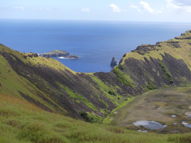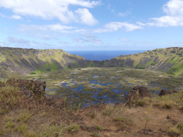 6. Go crater crawling. If visiting the volcano at Ranu Kau and Orongo, it’s really worth the 1-2 hour walk around the crater edge to the far side of Kari Kari (ie. opposite direction from Orongo). The spectacular view of the crater, with the precariously perched village, the sheer cliffs and the jagged motus poking out of the bluest sea, is really not something you want to miss.