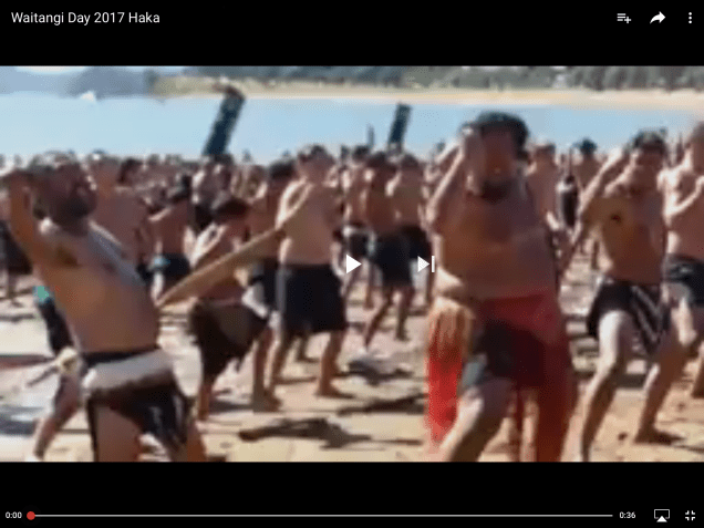 Video clip of the Haka from the waka rowers on Waitangi Day 2017.